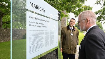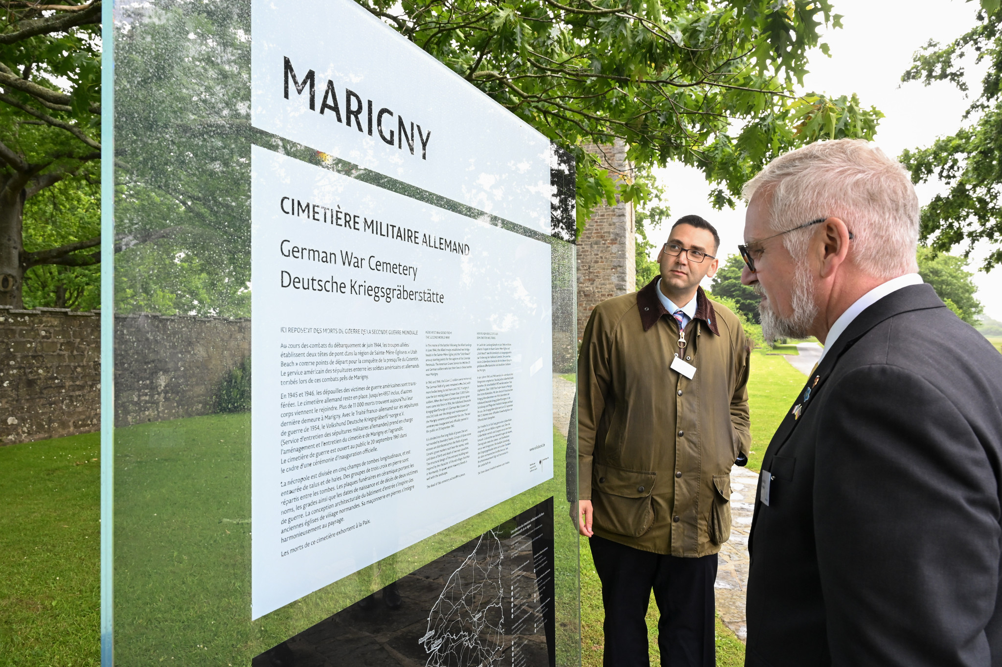Mit einem kunstvollen Gedenkzeichen erinnert der Volksbund Deutsche Kriegsgräberfürsorge e. V. in der Normandie an die Befreiung Europas durch die Alliierten im Zweiten Weltkrieg. Dies geschieht mit Unterstützung der Stiftung Würth. Gleichzeitig erweitert eine multimediale Dauerausstellung die deutsche Kriegsgräberstätte Marigny in Frankreich zu einem Gedenk- und Lernort.