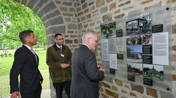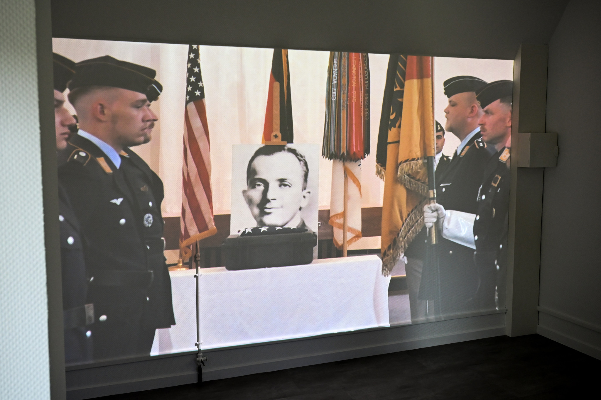 Die Erinnerung an 1944/45 lebendig halten – dazu trägt auch die neue multimediale Dauerausstellung bei, die Dirk Backen ebenfalls einweihte. Kernstück ist ein kleines Kino, in dem Filme über die Landung der Alliierten in der Normandie („Operation Overlord“) vor 81 Jahren und das Schicksal des amerikanischen Soldaten Nathan B. Baskind informieren.
