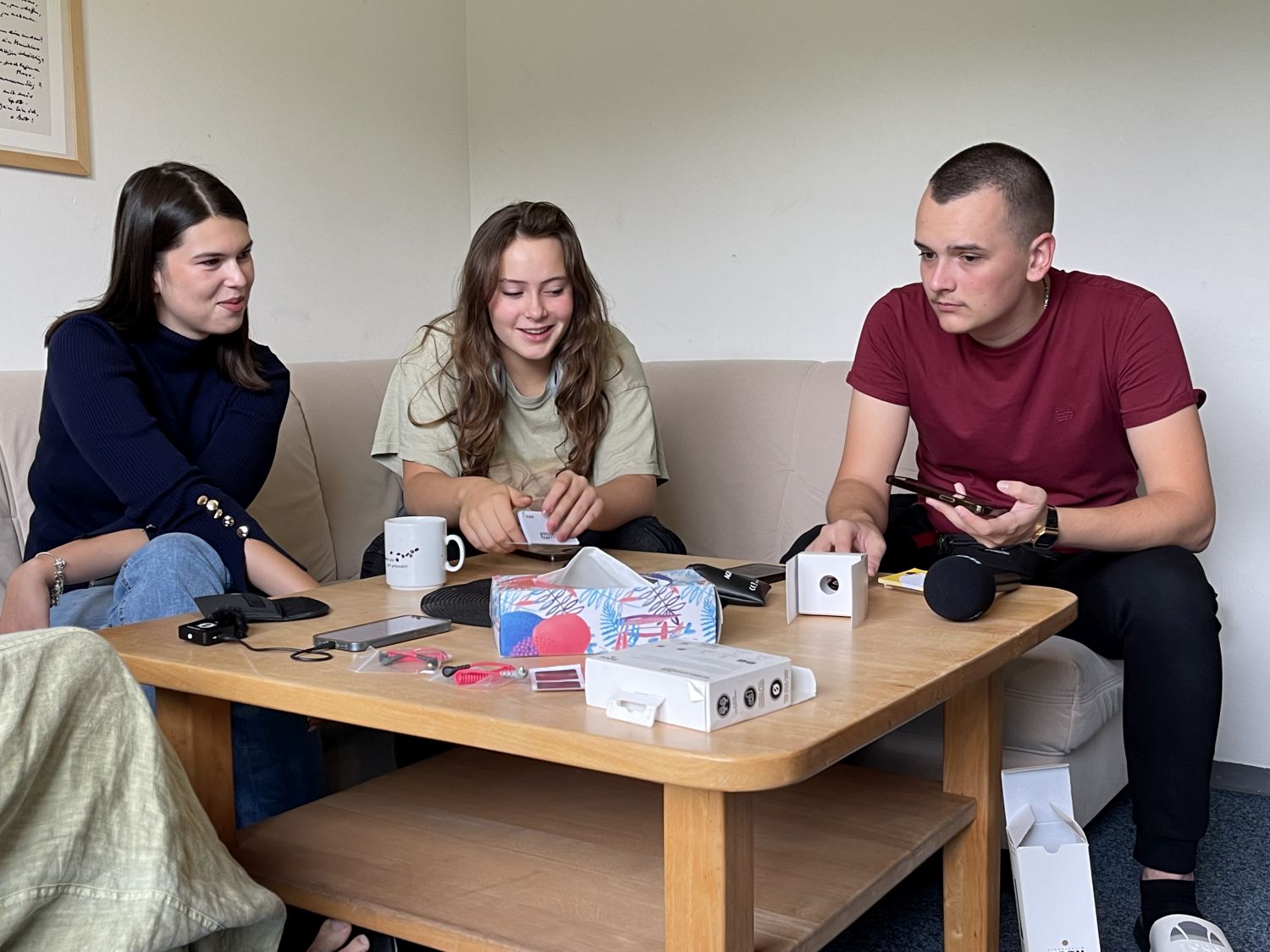 Der folgende Tag beginnt mit Gruppenarbeit. Während der sechs Jugendbegegnungen von „Against Forgetting“ sollen eine gemeinsame englischsprachige Ausstellung und ein Podcast entstehen – gespeist aus Eindrücken und Arbeitsergebnissen der Teilnehmerinnen und Teilnehmer: multinational und multiperspektivisch. Stella, die zum Podcast-Team gehört, findet es besonders wertvoll, die verschiedenen Narrative kennenzulernen: „Ich finde es spannend, in der Gruppe unterschiedliche Perspektiven zu haben und die Möglichkeit, uns darüber auszutauschen.“ Für ihren Podcast interviewt das Team mehrere Gruppenmitglieder.