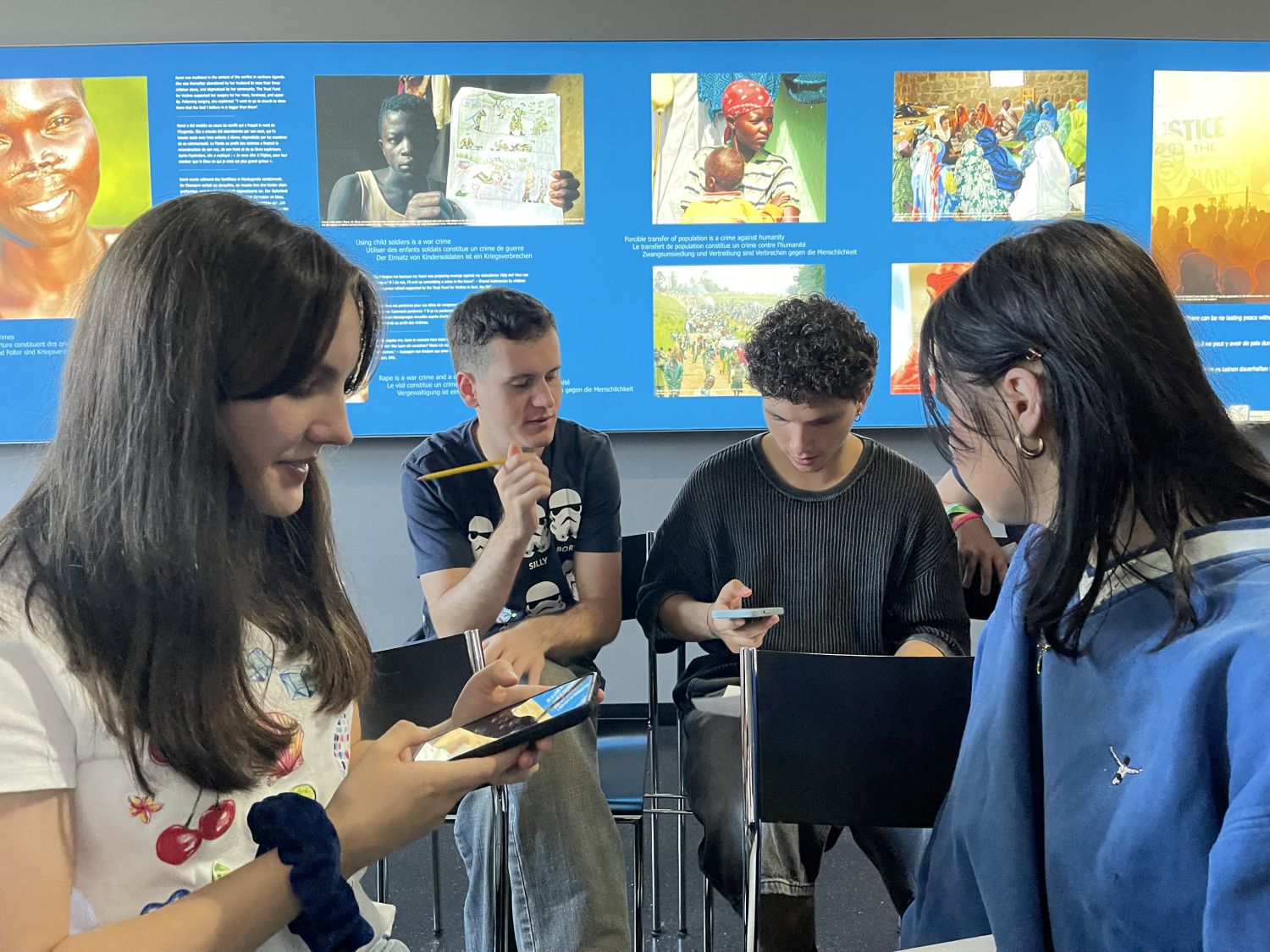 Heute befindet sich an diesem historischen Ort ein Museum. Eine Dauerausstellung informiert über jene Gerichtsverfahren, die eine Neuerung im internationalen Strafrecht darstellten und die Entwicklung zum Internationalen Strafgerichtshof in Den Haag einleiteten. Mit Zettel und Stift ausgestattet stöbern die 15- bis 24-Jährigen durch die Ausstellungsräume, sammeln Informationen für ein Geschichts-Bingo. Anschließend diskutieren sie über die Ergebnisse und tauschen Erkenntnisse aus.