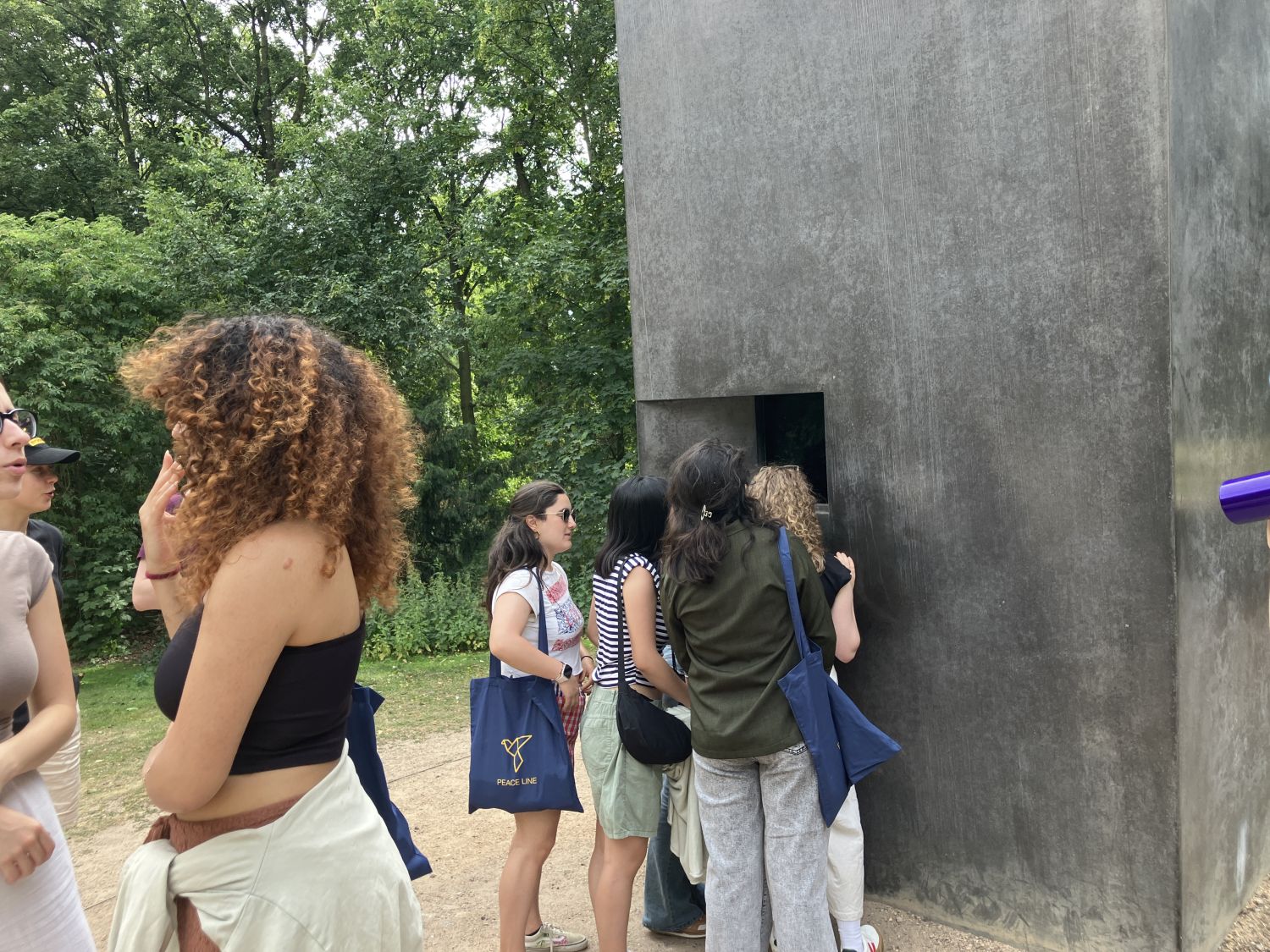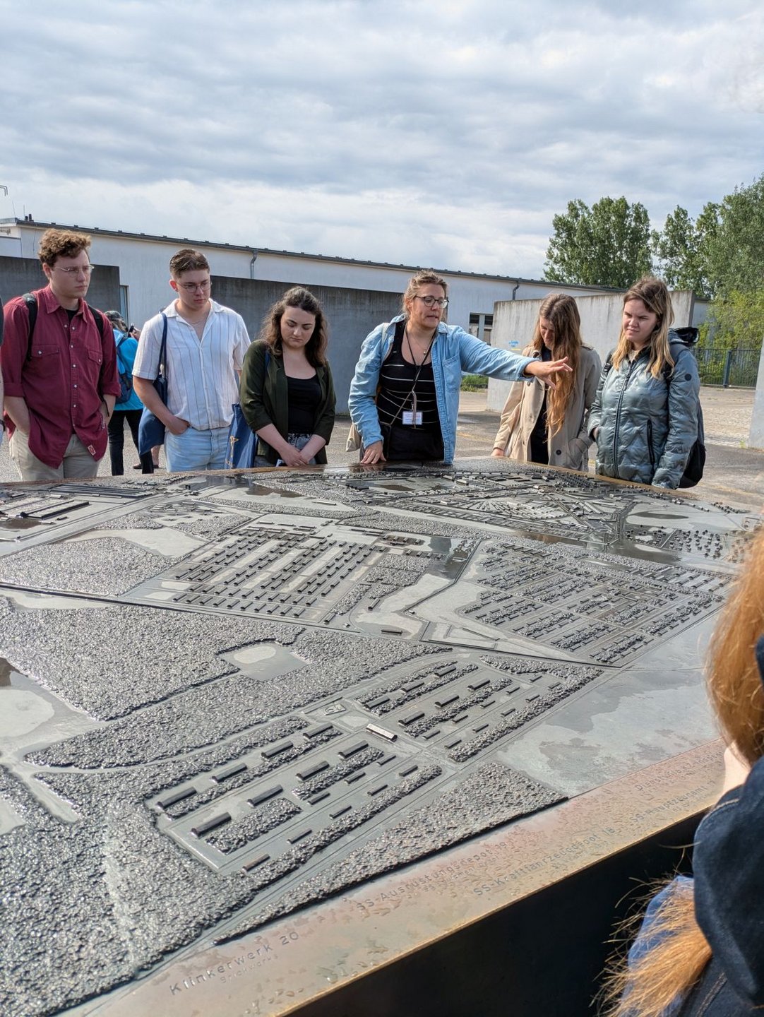 Ein Besuch der KZ-Gedenkstätte Sachsenhausen stand am dritten Tag auf dem Programm. Nach einer Führung über das Gelände erkundete die Gruppe die Ausstellung „Wir intervenieren! Kritische Perspektiven auf die Ausstellung Sinti und Roma im KZ Sachsenhausen“. Hier stellte sich die Frage, wie Stereotype und Täterperspektiven in Ausstellungen weiterexistieren können.