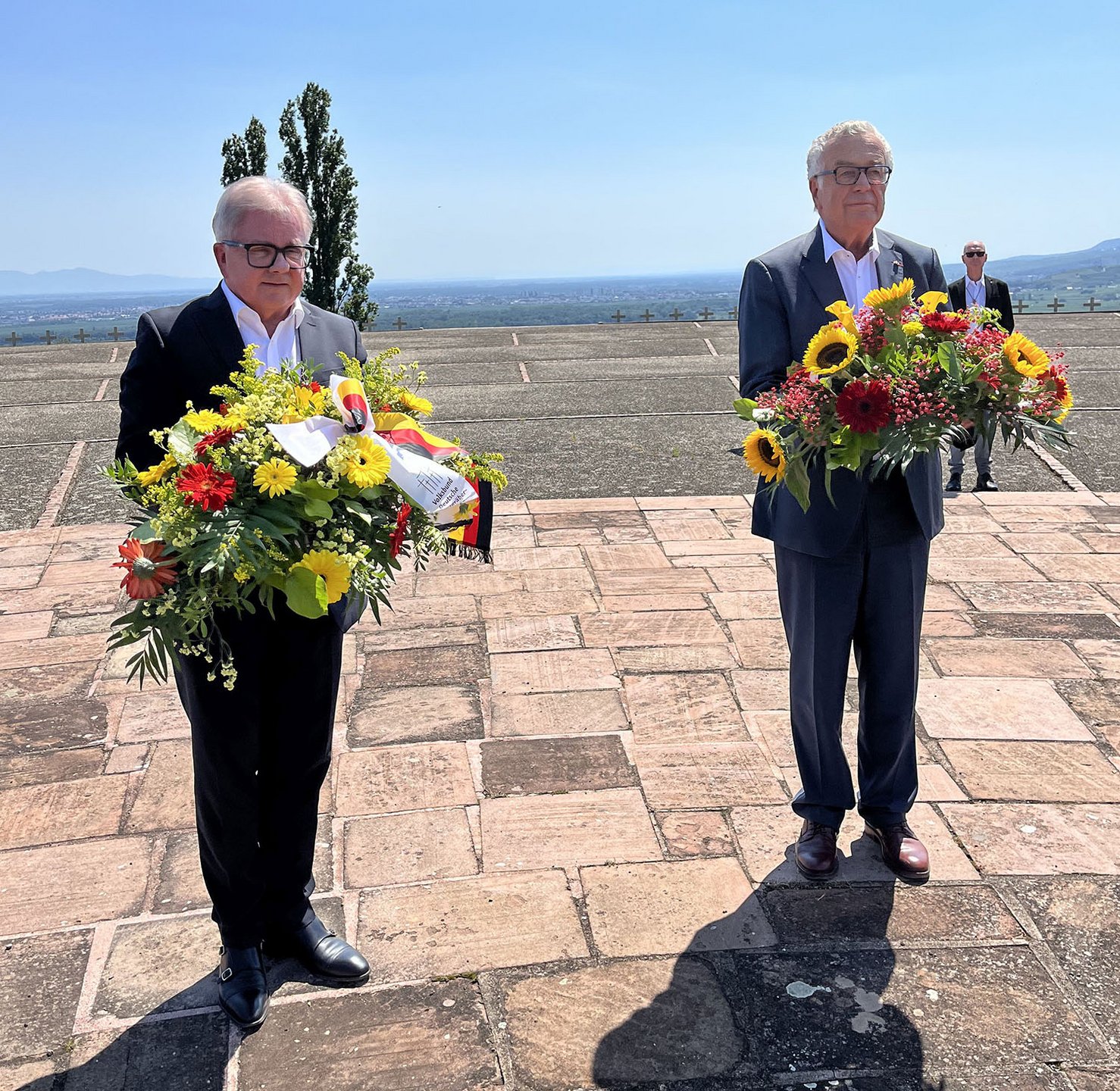 Frank Hämmerle hatte die Gäste begrüßt. Der Vorsitzender des Bezirksverbands Südbaden-Südwürttemberg und Landrat a.D. hatte mit Dankbarkeit auf acht Jahrzehnte Frieden, auf das Vertrauen der französischen Nachbarn und auf das unermüdliche Engagement all jener geblickt, die sich der Erinnerung verpflichtet fühlen.