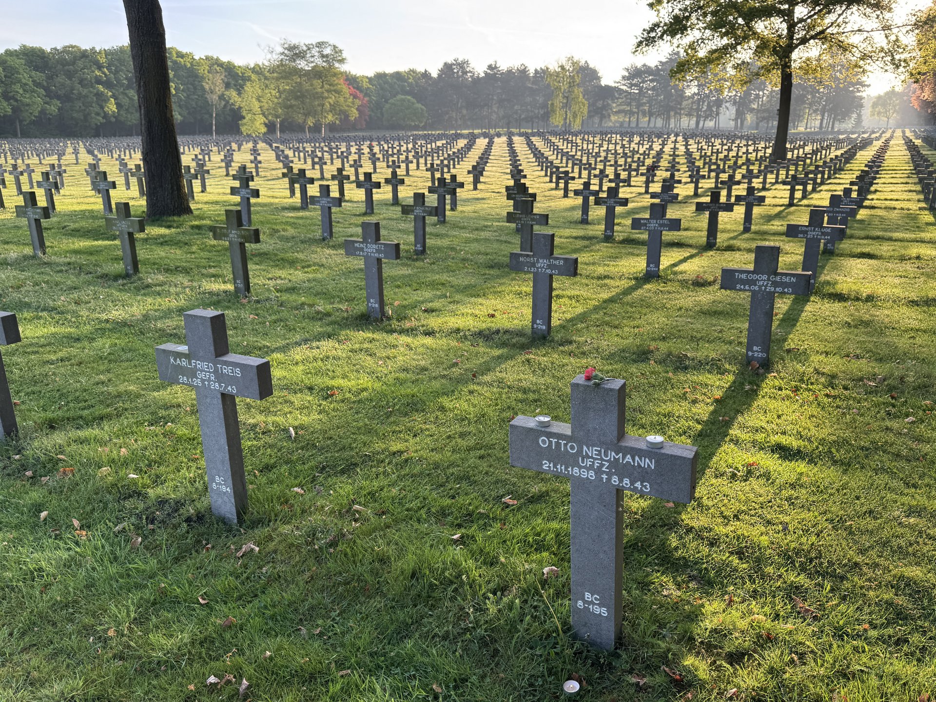Auf der Heimfahrt komme ich zu dem Schluss, dass die damalige Zusammenbettung aller Kriegstoten aus heutiger Sicht richtig war. Abgesehen davon, dass sich das ewige Ruherecht für Soldaten in unzähligen kleinen Grablagen nicht garantieren lässt: Ist es nicht die schiere Masse dieser jung gestorbenen Soldaten, die einen tiefen Eindruck auf Besucherinnen und Besucher macht und das Ausmaß der Kriege des 20. Jahrhunderts erahnen lässt?