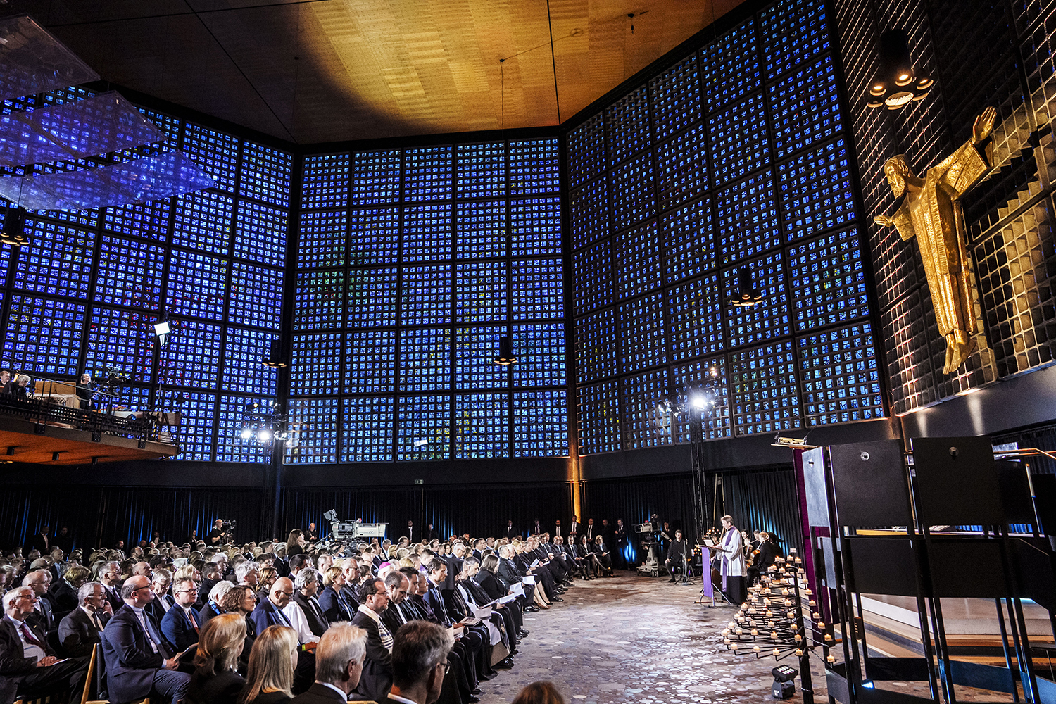 Schon am Morgen waren zahlreiche Vertreter aus Bundes- und Landespolitik, Religion und Gesellschaft in der Kaiser-Wilhelm-Gedächtniskirche zusammengekommen. An dem Gottesdienst nahmen die Spitzen der fünf Verfassungsorgane teil. Bundespräsident Frank-Walter Steinmeier und der neue CDU-Bundeskanzler Friedrich Merz sowie die Präsidentinnen und Präsidenten von Bundestag, Bundesrat und Bundesverfassungsgericht – Julia Klöckner (CDU), Anke Rehlinger (SPD) und Stephan Harbarth (CDU).
