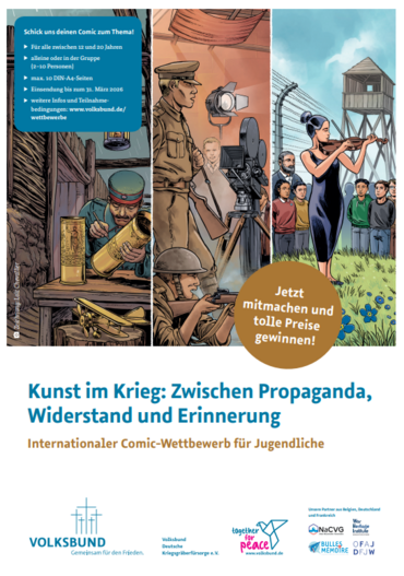 Flyer Comic-Wettbewerb "Kunst im Krieg: Zwischen Propaganda, Widerstand und Erinnerung"9. Internationaler Comic-Wettbewerb für Jugendliche 2025/2026